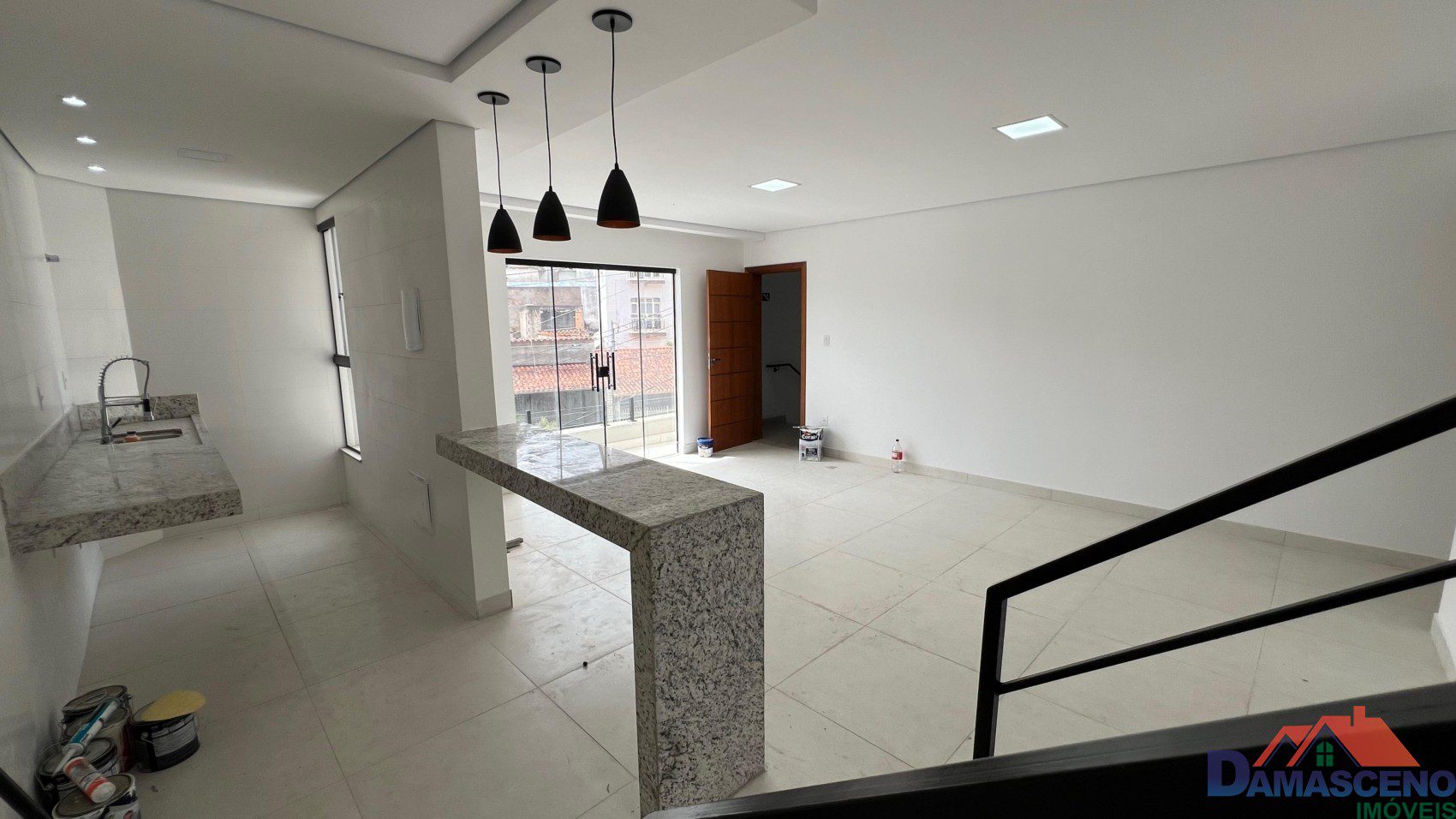1º Pavimento: 3 quartos sendo 1 suíte, sala ampla para 2 ambientes com sacada e cozinha em conceito aberto e banheiro social;