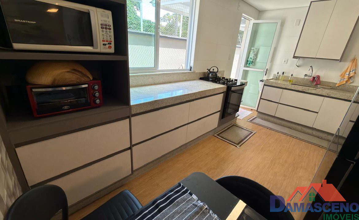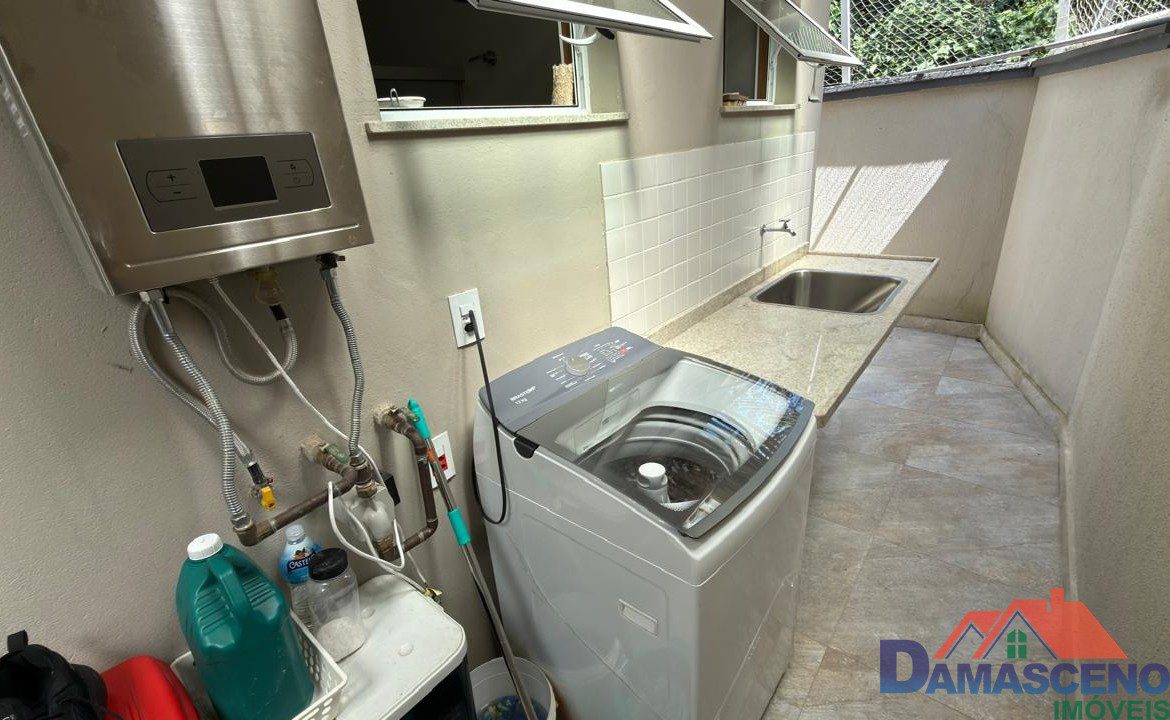 Casa com muitos móveis planejados e aquecimento à gás para chuveiros e torneiras, exceto área de serviço.