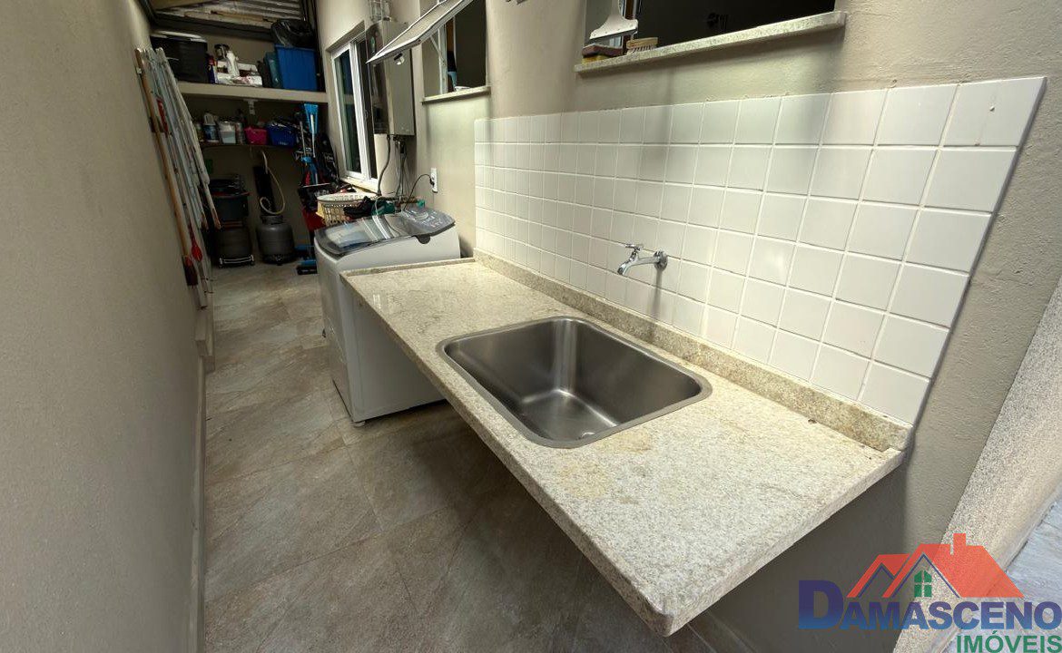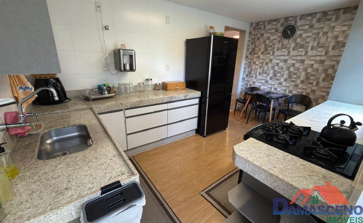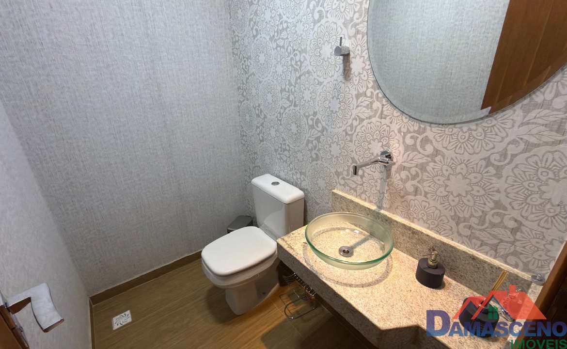 1º Pavimento: 2 quartos sendo os 2 suítes, sala para 2 ambientes, lavabo, cozinha com fogão, área de serviço e área externa.